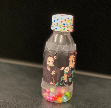 すみっコぐらしのマラカスです。カプセルの中にはキラキラのかわいいビーズが入っています。(小学生)