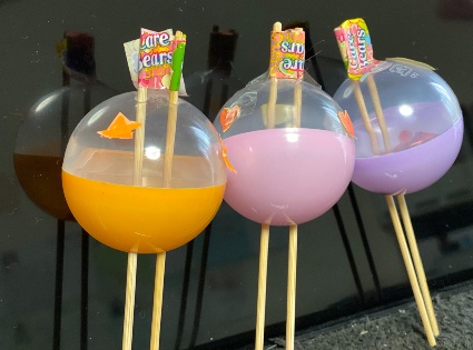 カプセルに、3種類のビーズが入っています。それぞれ重さが違い、色々な音がします。(小学生)