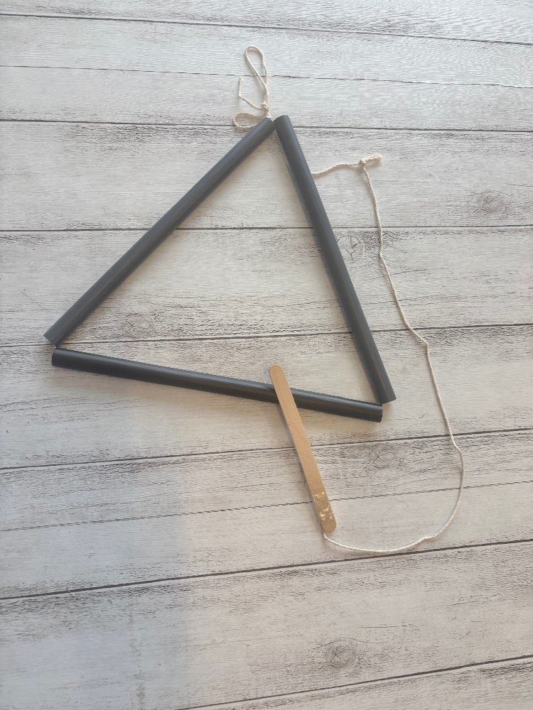 ストローとタコ糸で作ったトライアングル。発想がとても豊かです。軽快な音がします。